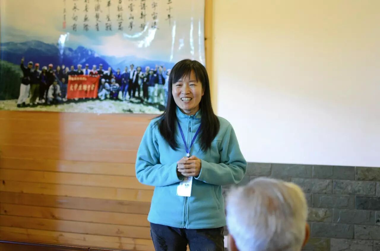 当天下午,在滇金丝猴国家公园专家楼会议室,召开了绿色营20周年研讨会,会上先播放了唐锡阳老师亲自参与制作的影像片《马霞与我们同行》,片中讲述了马霞阿姨从初到中国,到与唐锡阳先生相识,一起考察自然保护区与国外的国家公园,并一同撰写《绿色环球行》,再到后来马霞阿姨病危之际仍推动第一届绿色营的举办,并在病床上为绿色营录音致辞的种种历程,让在场的全体老师和营员们都无比动容。