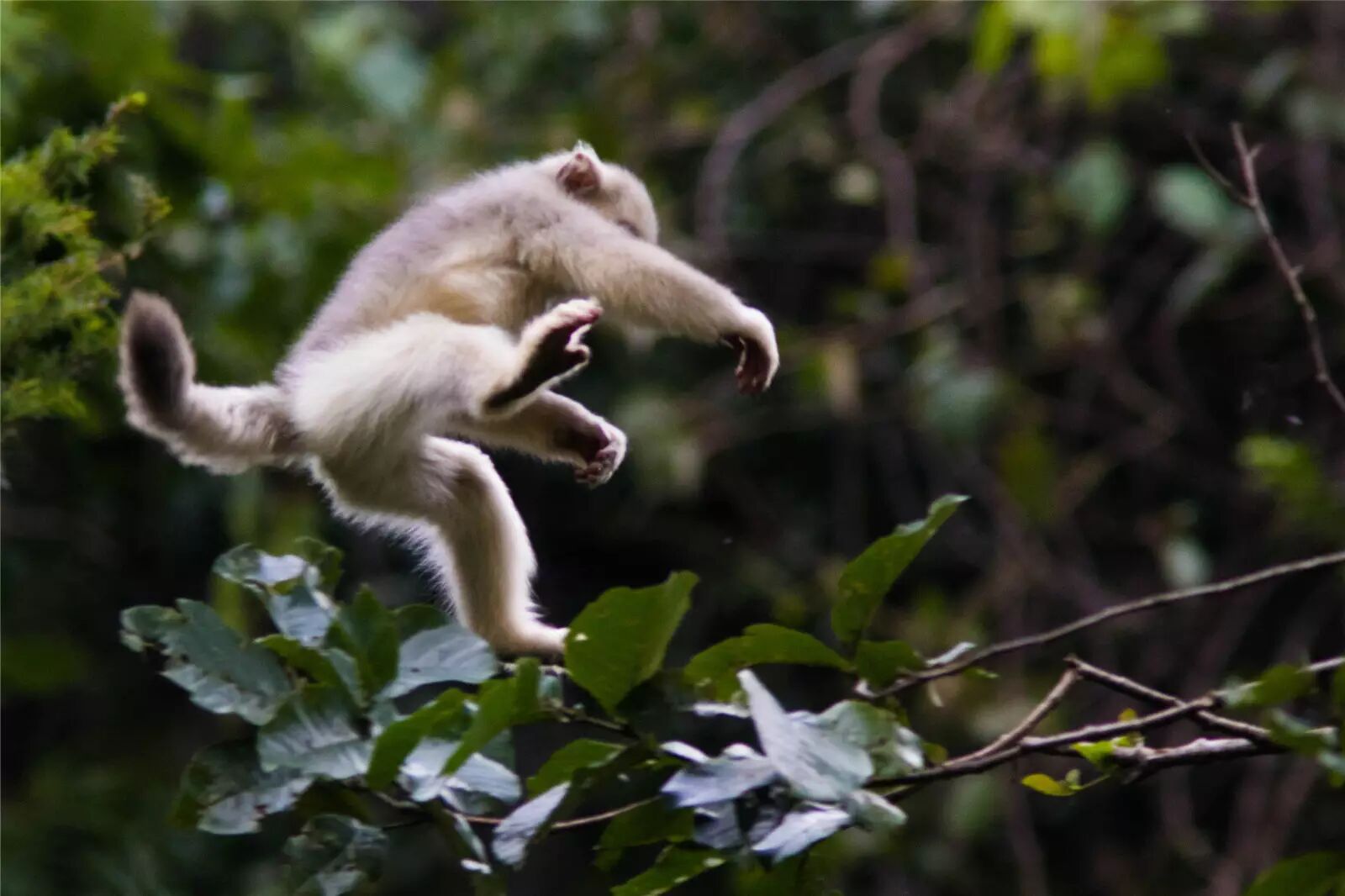 活泼的白毛小猴在林间荡来荡去,享受作为一只小猴的乐趣。大公猴吃饱了,便懒洋洋地稳坐在树杈间,静静地看着他的妻子和孩子,心满意足。母猴们则不断地寻觅食物,为即将到来的小猴子做准备。