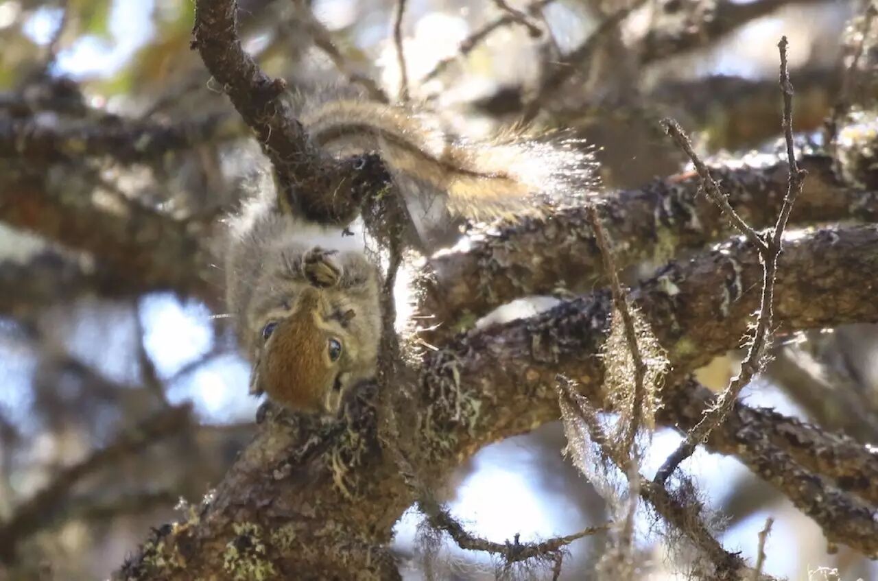 第三天,我们沿着另一条河流的方向,从林间出发,由八爷和保护区的工作人员江初绒布、此姆带领我们认识了当地特有的动植物,也了解了白马雪山工作站的历史。
