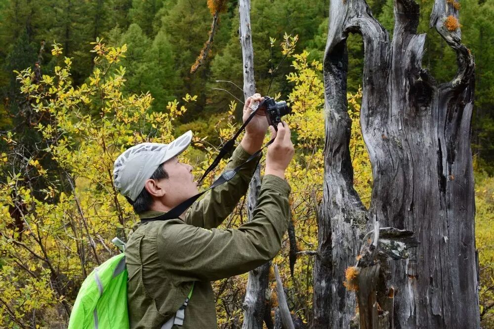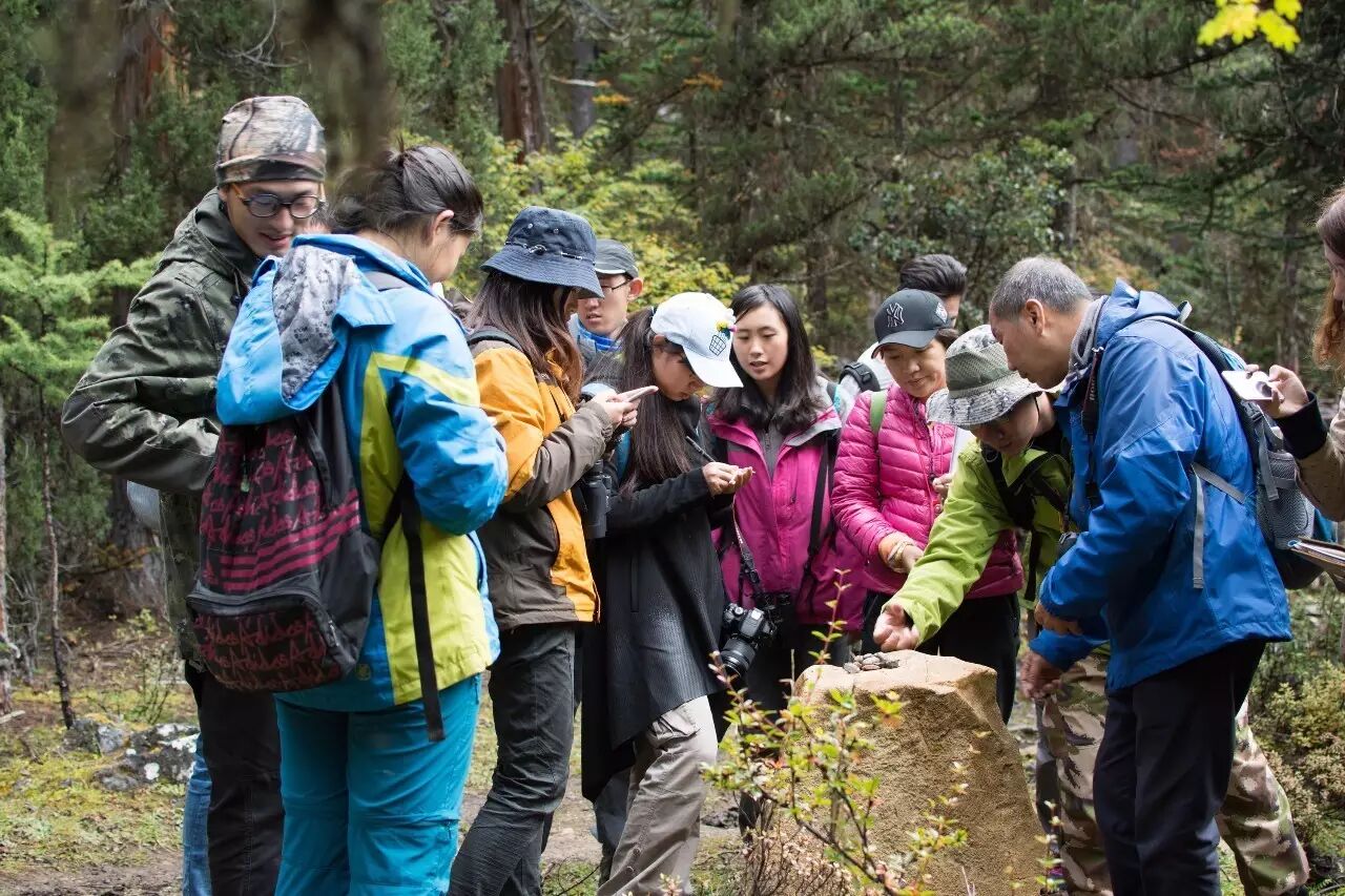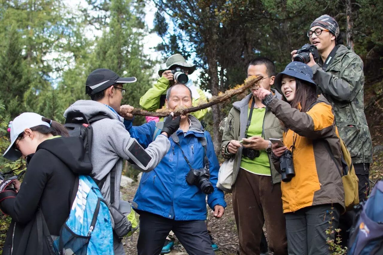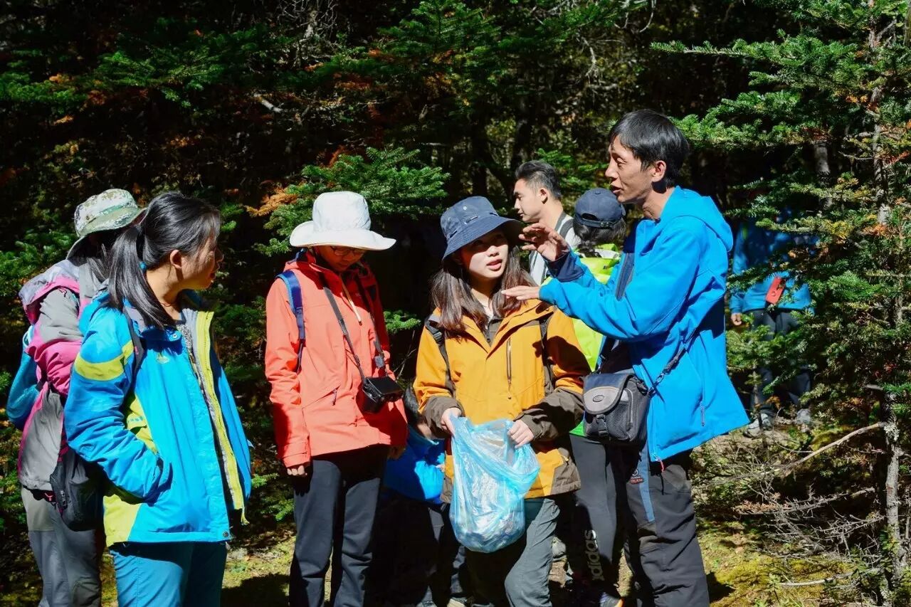 八爷一路走,一路讲,简直就是自然界的活字典,将大自然的故事娓娓道来,或风趣幽默,或认真详实,时不时引来伙伴们的一阵阵的惊叹或欢快的笑声。伙伴们深深地被这白马雪山的景色所吸引,更被八爷讲述的故事所陶醉,十八般武艺上阵,或速记,或拍照,想把有关白马雪山的知识带走。有伙伴调侃说,把八爷扛回家就好了。