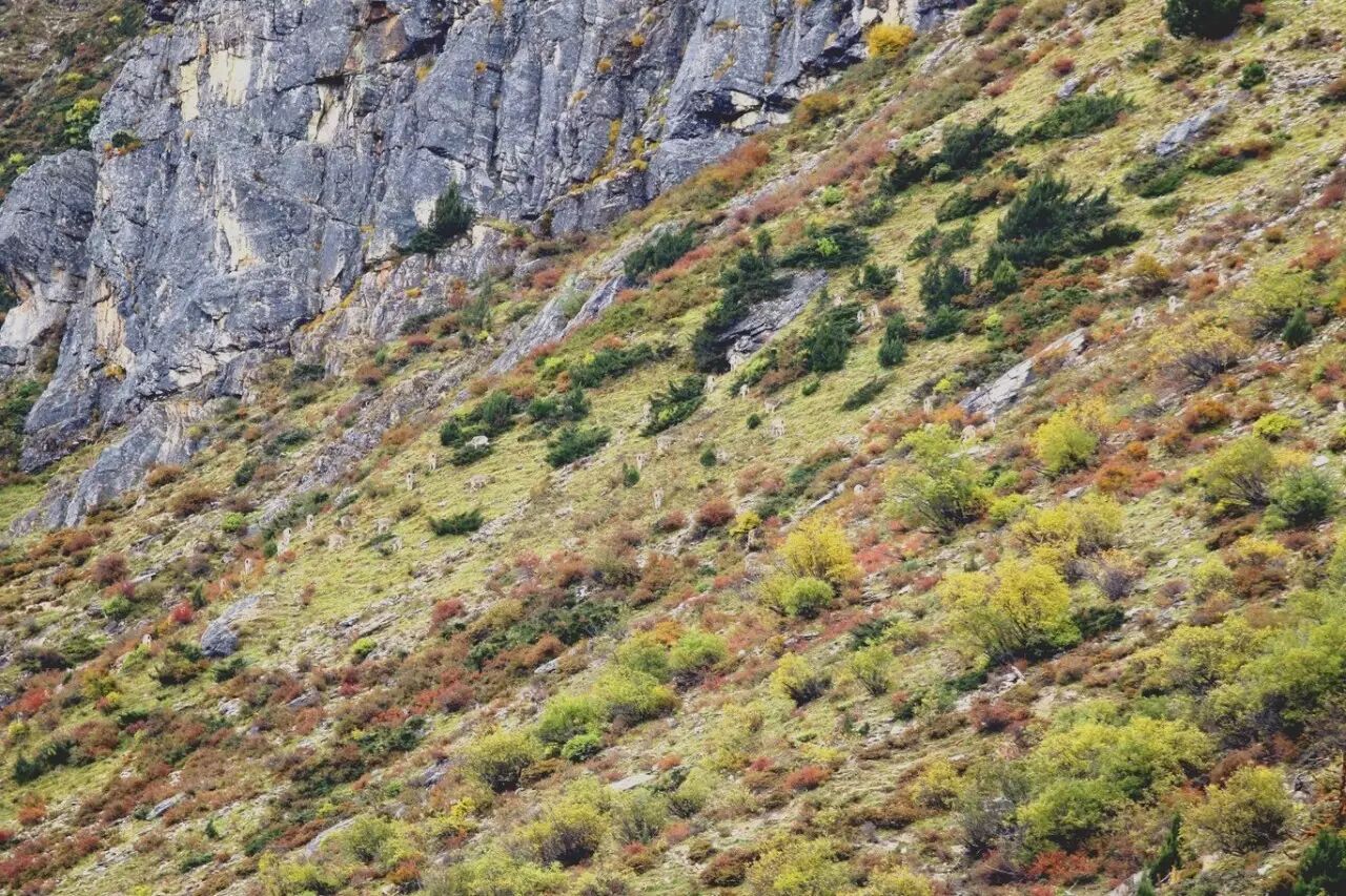 我们沿着河流,走了好久好久,才到达目的地。看见工作人员指着山脚那边说,有岩羊。我们顺着方向一看,黄黄绿绿的,啥也看不见。拿起望远镜,还是摸不着头脑。工作人员拿出单筒,调好焦距,让我们观察。这时候才看到了好多好多的岩羊。而一旁的工作人员开始了统计出岩羊的数目,原来走这么远这么久就是来数羊的啊。随行的工作人员说,这很重要。在保护区里,科研数据就是这样一步一步的观察和纪录所得来的。容不得一点马虎。