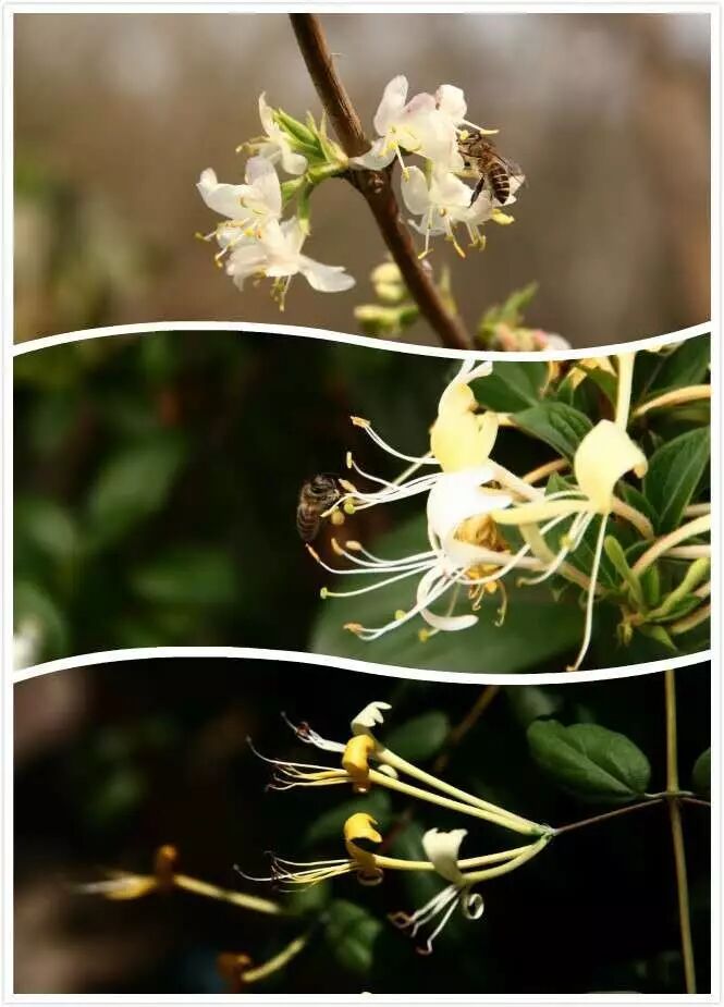 以上三图:郁香忍冬、金银花、长花忍冬(从上至下)