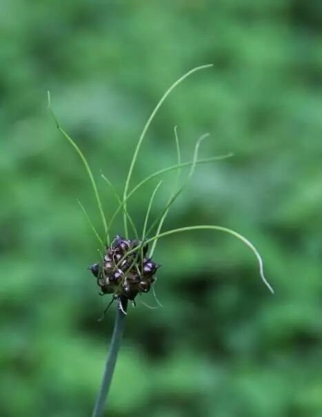 这个植物是江浙地区非常乡土的一个植物,叫薤白,俗名叫小根蒜。乡下人爱吃它。它发芽特别快,并且并非种子发芽,而是珠芽发芽。