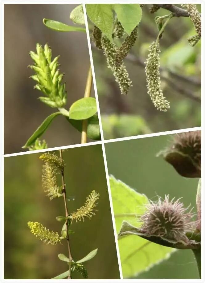 左垂柳 (上雌 下雄) 右构树 (上雄 下雌)