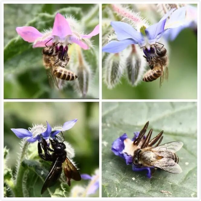 琉璃苣也算一种蜜源植物,因为它花期特别长,可以源源不断的提供花蜜。单朵花的花期为一天半左右,但是整个花序最多可以开一个半月到两个月。类似的开花时间长,提供花蜜多的植物还有大花醉鱼草和泽兰。