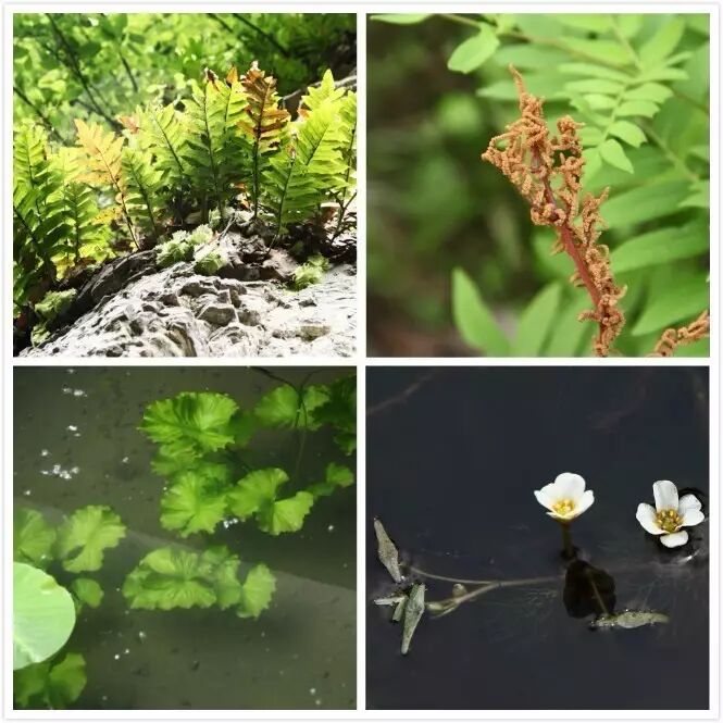 以上四图:槲蕨、紫萁、萍蓬草、水盾草(顺时针)