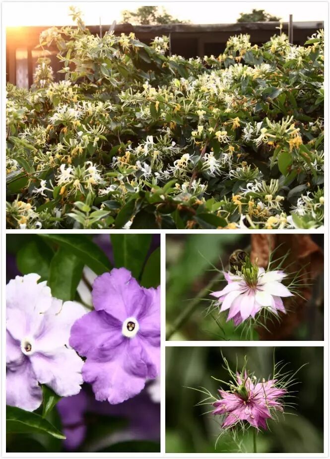 以上四图:金银花、黑种草、鸳鸯茉莉(顺时针)