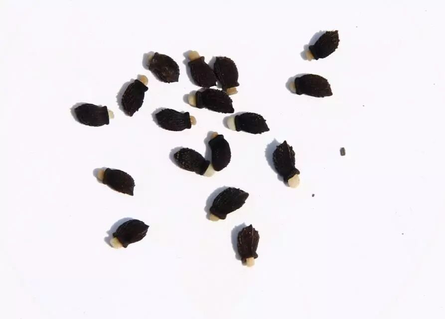 这是琉璃苣种子的形态,在一端有白色的物质。叫做油质体,是典型的蚁运植物的特征。油质体会吸引蚂蚁来运送种子到其他地方完成传播。鼠妇也会去搬运琉璃苣种子。
