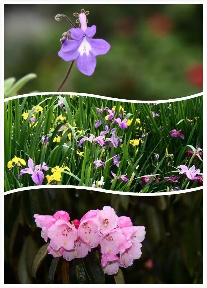 以上三图:海豚花 鸢尾属植物 峨眉银叶杜鹃(从上至下)