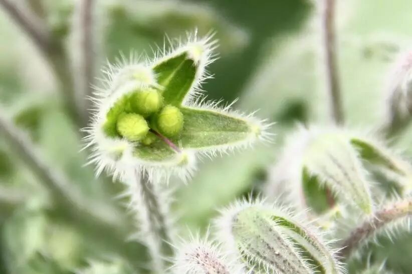 这是琉璃苣的果实,它在刚开始发育的时候就分成了四个小坚果。