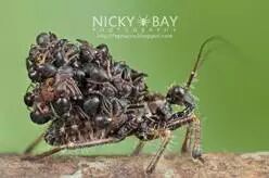 2、身上背满战利品的昆虫,以蚂蚁为食,把捕到的食物背到自己身上,以便遇到新的蚂蚁时不被攻击。