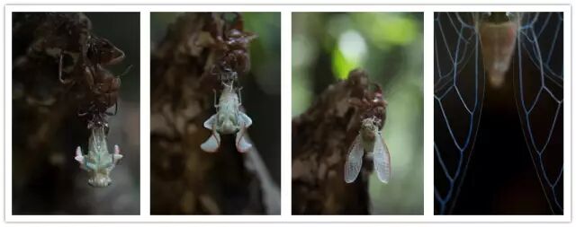 羽化:从幼虫的壳体中钻出来,并不断的呼吸空气,增强其气压。