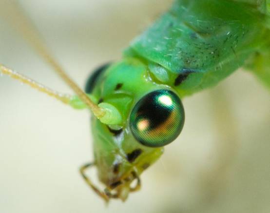 像巨齿蛉那样,一部分的昆虫成体头上还会有称之为背单眼的器官,用以感知光线和节律。一般成虫的单眼没有成像的功能。除了背单眼,一些昆虫的幼虫还会有侧单眼,如上图所示。