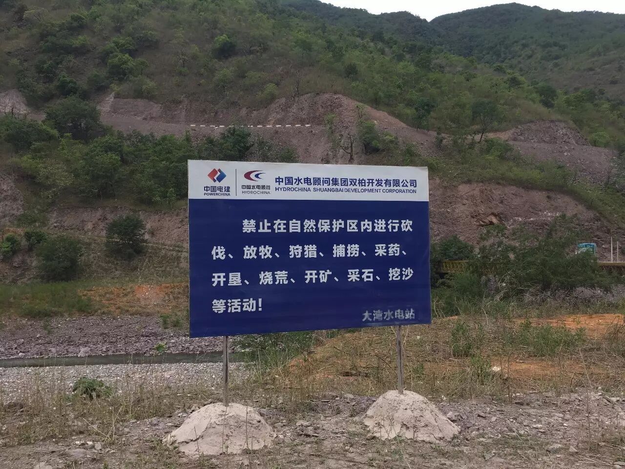 水电站附近的关于保护区的警示牌,落款是大湾水电站,颇具讽刺意味 ©️水杉