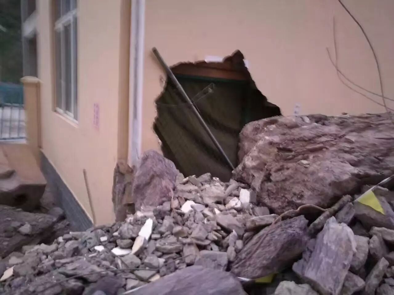 6月份踩点时滑坡落下的石块砸穿了大湾电站的一栋建筑,目前已经修复 ©️水杉、顾伯健