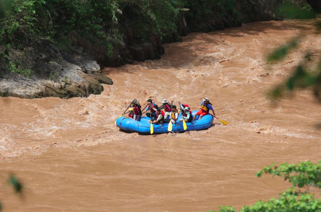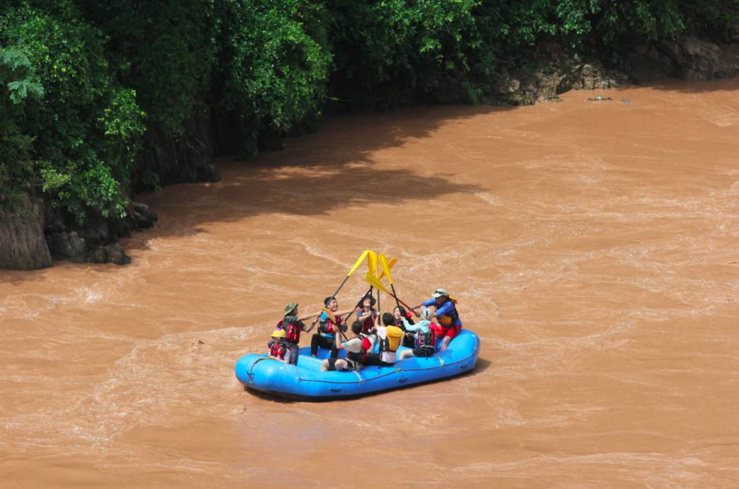 因为当前正值云南的雨季,所以活动选取了紧邻恐龙河州级自然保护区核心区的一段进行漂流考察,该段河流属于红河干流,礼社江的下游、石羊江的上游位置,这里曾经是绿孔雀密集活动的区域,本次活动也是该河段以绿孔雀栖息地考察为目的所进行的第一次水上漂流。