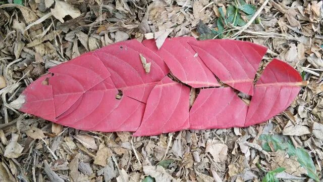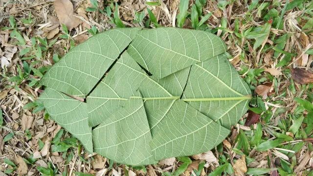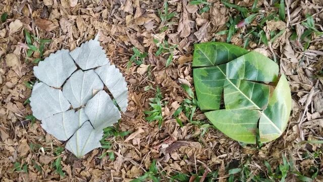 由于大多数是不同的叶子,根据叶片的颜色和手感,很容易找到需要的碎片,再从叶脉走势、细节纹路来进行拼接。拼得的叶片反增几分艺术感,也通过观察细节时更加了解了它。