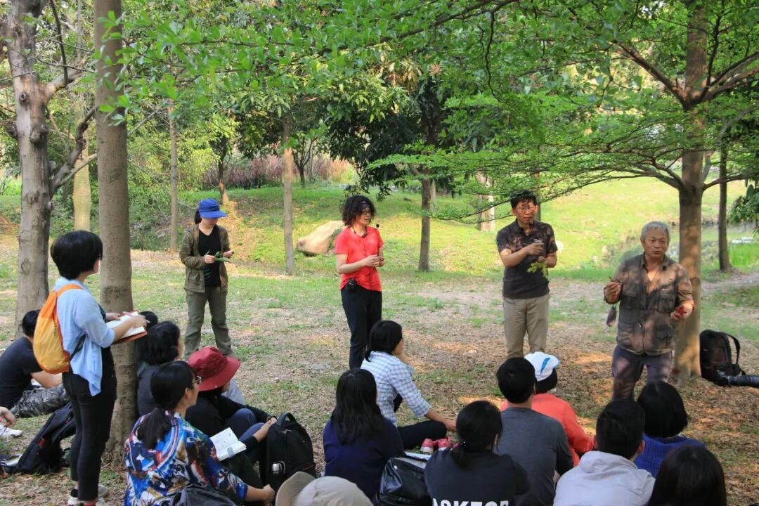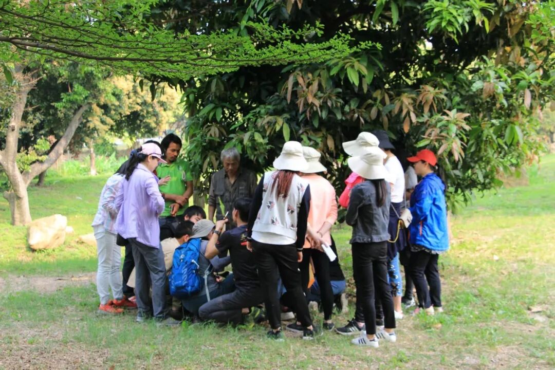 再次来到海珠湿地的那片小叶榄仁林,导师们分别坐在树下,手在不透明袋子里倒饬着神秘物。看来刺激的感官游戏一扫午睡的慵懒,四个分组轮流走向对应导师,怀着好奇,甚至忐忑,把手伸入袋中,感受其中自然物的形状、大小、纹路……“唰!” 袋子突然一动,学员吓得心慌意乱,手动使坏的导师一边乐个不停。