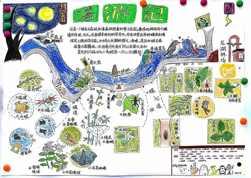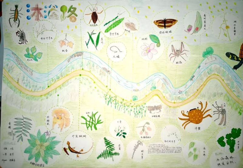 除了室内课程,户外观察自然是必不可少的。龙湖林场位于邵武市水北乡,山形复杂,物种丰富,有许多国家重点保护野生动植物。可谓是自然爱好者的天堂。看看营员们的作品吧。