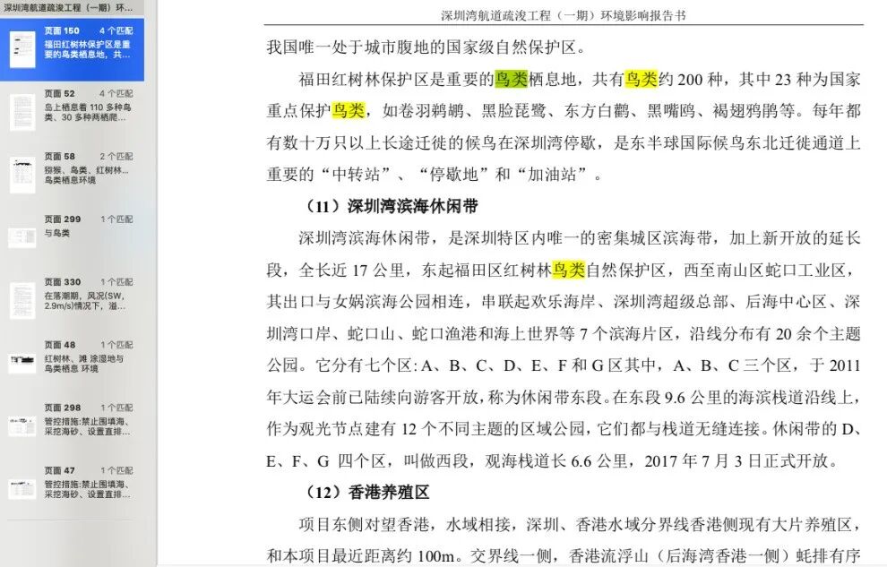 无论怎么说,黑脸琵鹭的名字,还是出现在了环评报告中,只是被描述为"生活在保护区中"。而有更多的候鸟,也在深圳湾生活,却被完完全全无视。