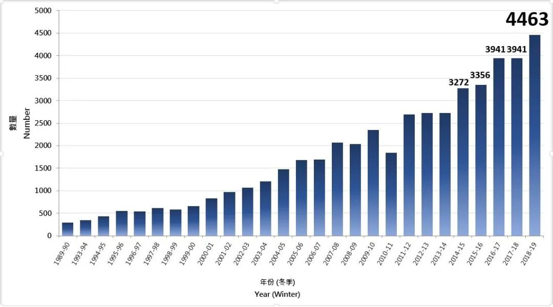 黑脸琵鹭便是这样对环境极为敏感的物种,深圳的明星与骄傲,也是东亚各国水鸟保护工作中的旗舰物种。经过近三十年的保护工作,这一物种的数量,已从1990s的300只,达到了2018-2019年度的全球同步调查中达到4436只。