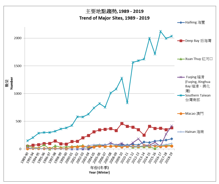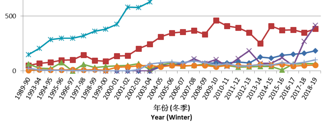 黑脸琵鹭单一地点数量的年际变化(局部)