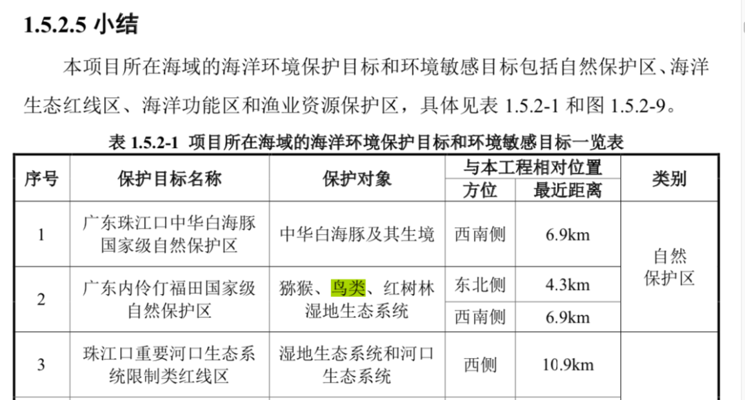 如果只看以上内容,仿佛这份报告书已经非常全面。做为一个资深鸟类爱好者&鸟类研究人员,我对环评书中关于鸟类的部分格外关注,但详细研判后,却发现了一些问题。其中最严重的是,《环境影响评价书》中只以极其简略的笔法,提到了距离项目地约7公里的红树林保护区中(下图粉色区域),有诸如黑脸琵鹭之类的珍稀鸟类生活。