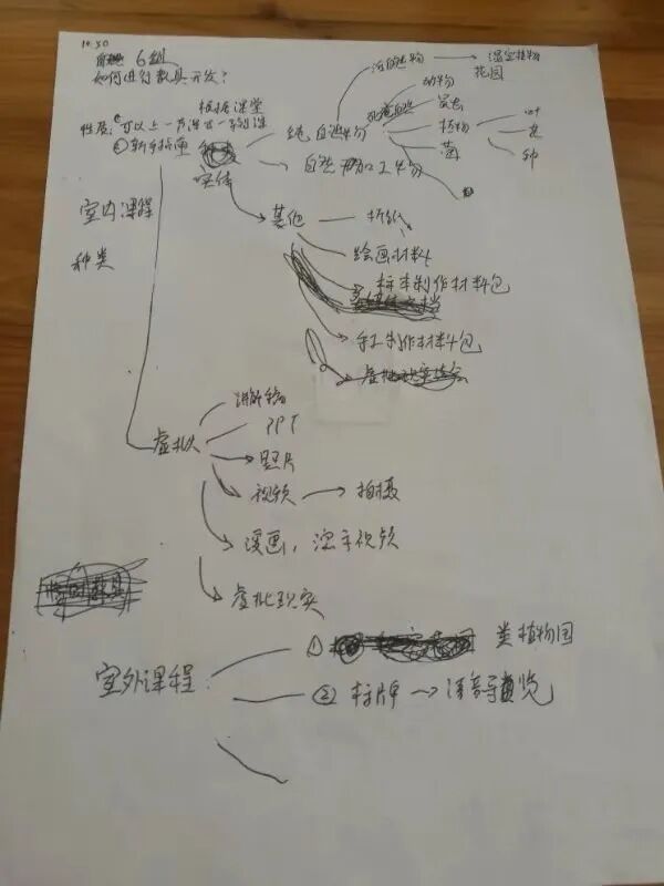 结合上课内容,以方便新人使用,可以反复利用的事物为佳。先分为虚拟教具,实体教具两个大类,再细分纯自然物,自然物加工物来进行思维扩散,结合小组中各成员的观点最后形成一份教具设计思路的框架图。