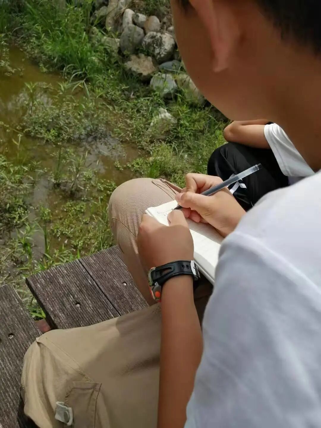 小任务完成后,我们汇聚到小溪旁交流和总结。