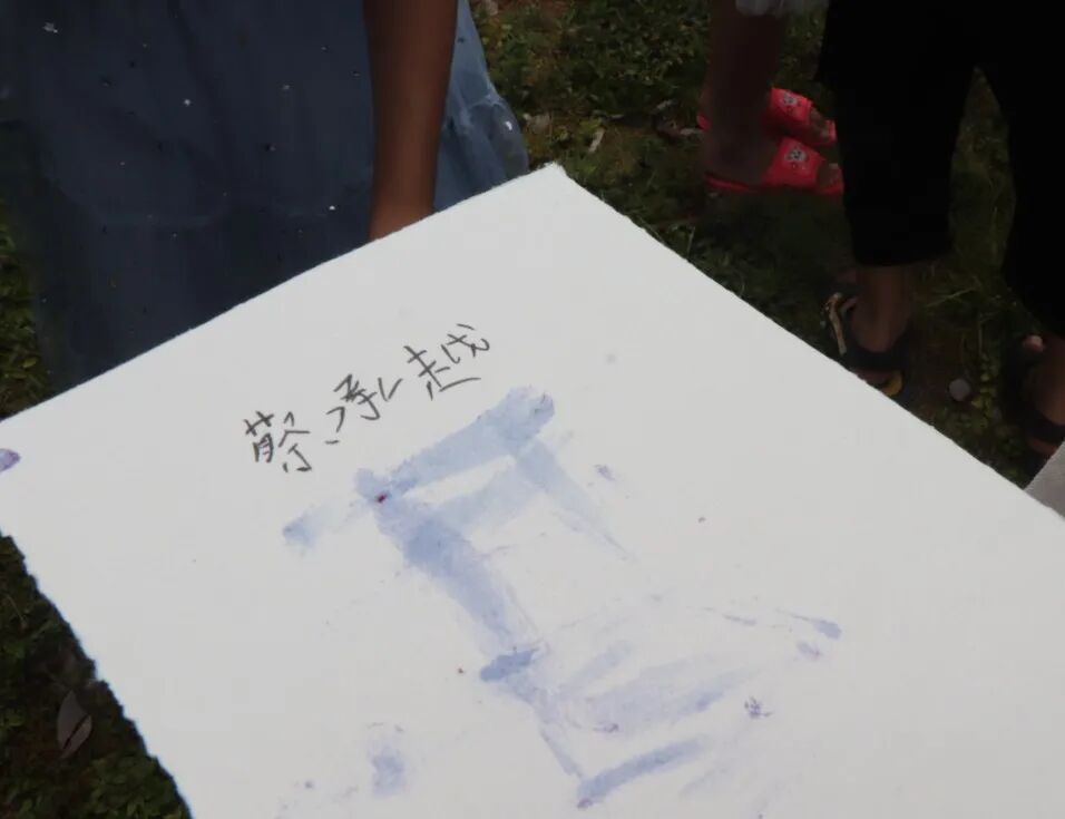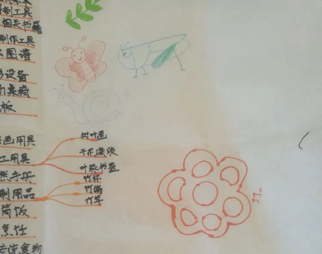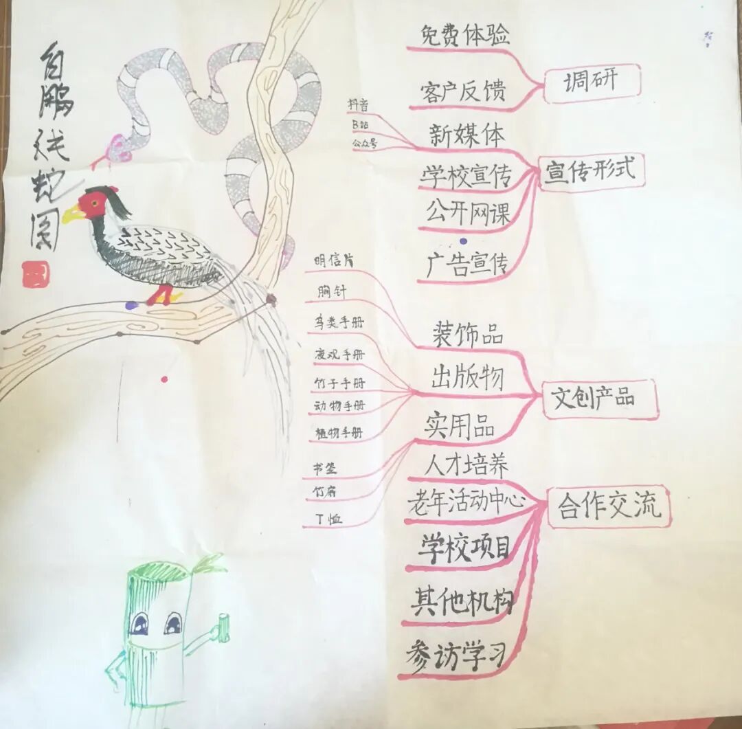 来自另一组的白鹤给我们的思维导图剪彩——用双面胶和美工刀剪彩,还亲自用油性笔给《白鹇戏蛇图》题字。
