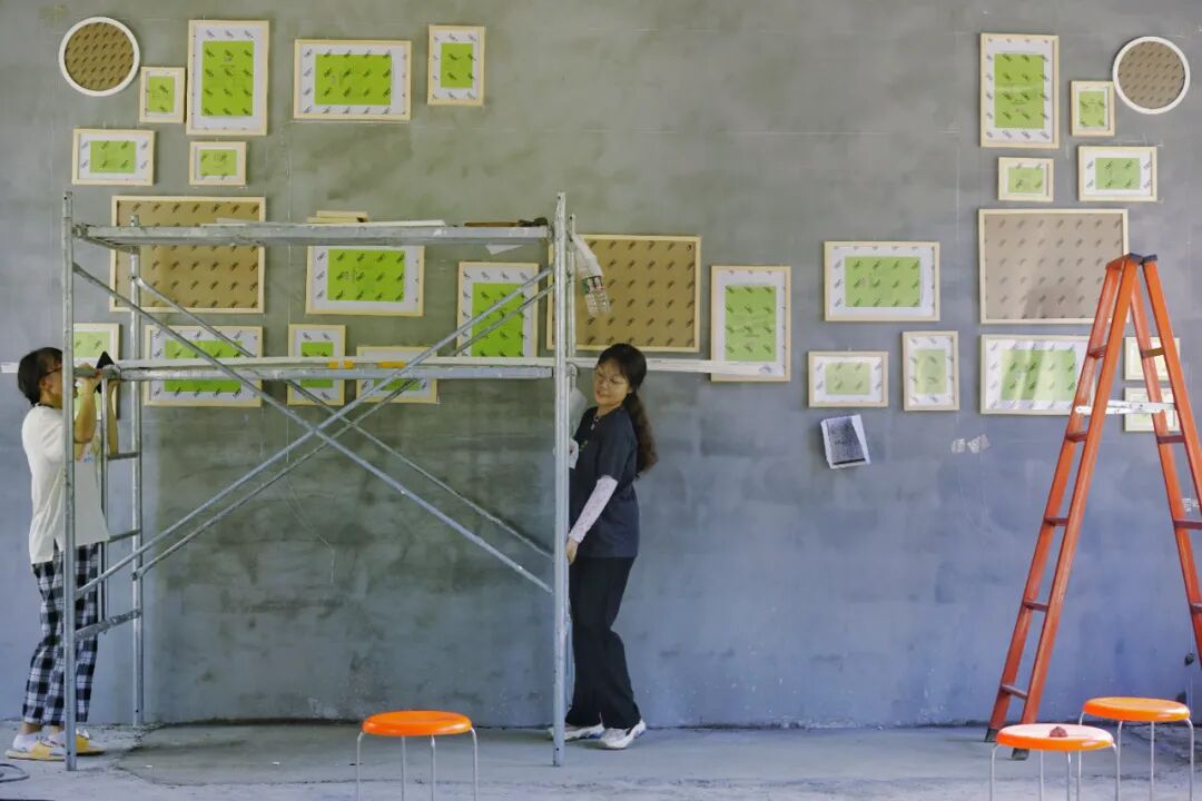 在这所学校旧址教室里,有一扇有着怪异规格的门窗一体的结构。也许这就是曾经学校的标准配置,可是却着实将我们给难住了。如何将门和窗切割才能更加美观和稳固?在以前的拆除的木质门窗结构中,我们可以看到中间穿插着两米长的铁杆,相当稳固。如果只是做一扇普通的门窗,可以非常快速完成,但是它并不能体现我们想要解决美观的需求。而设计就是要解决问题,所以我们提出所有人一起头脑风暴!