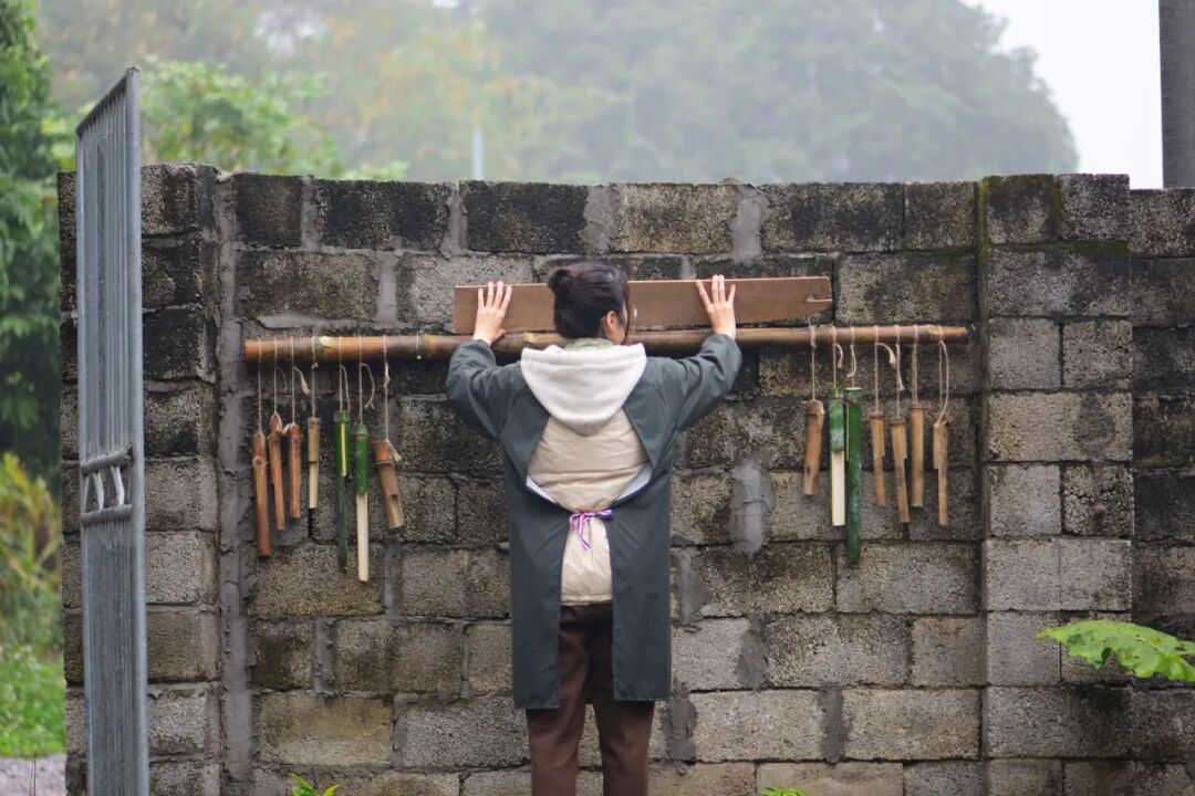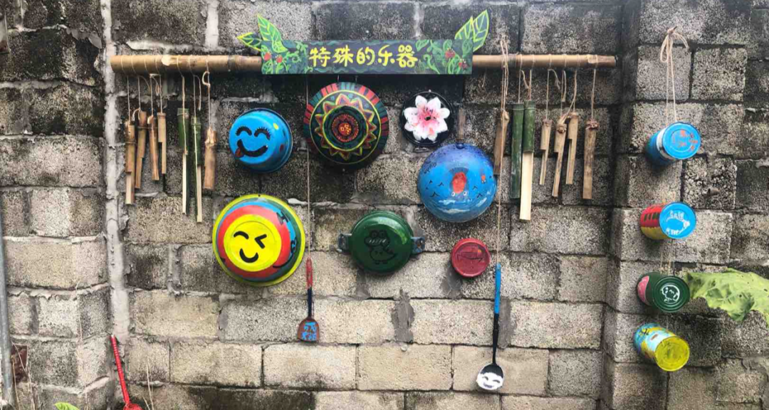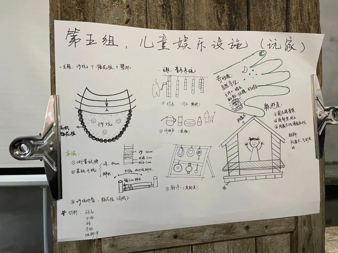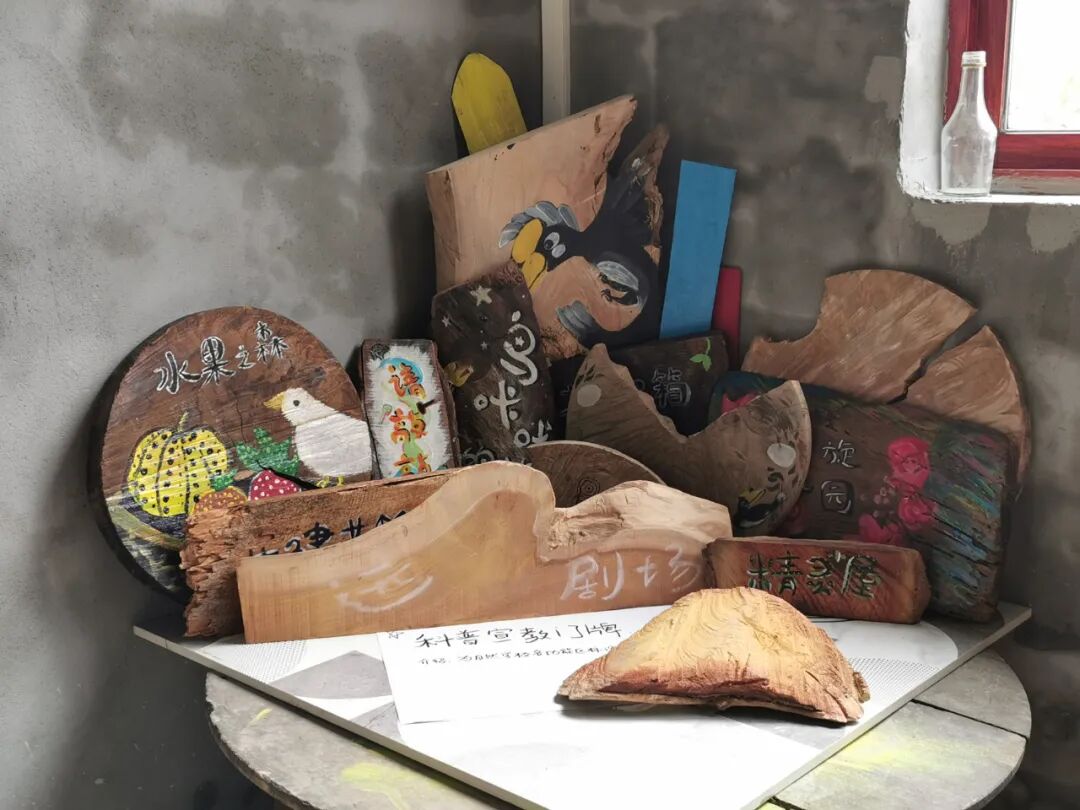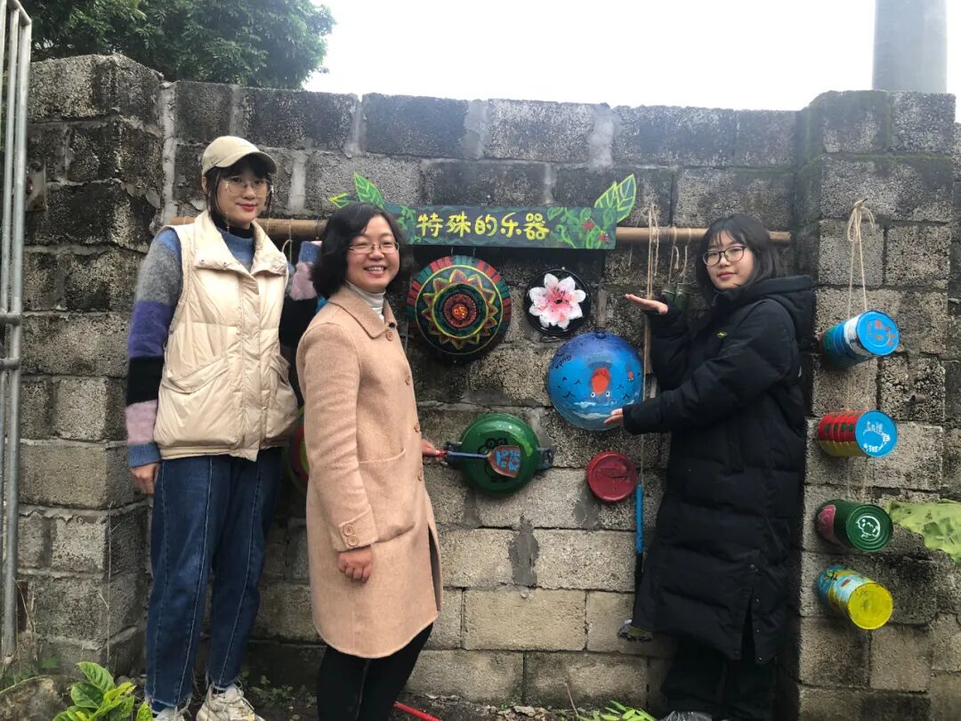 2 在既定目标基础上,增加儿童娱乐装置。制作音乐系统,顺利制作完成竹乐和厨乐。通过收集村中居民家里废弃的厨具,取用竹林里的竹材,与小朋友一起绘制了音乐系统,使用者可以用自己的方式听听这些特殊的乐器发出的声音。制作“精灵小屋”和“爱心小屋”等木作小屋,适用于小朋友玩耍。