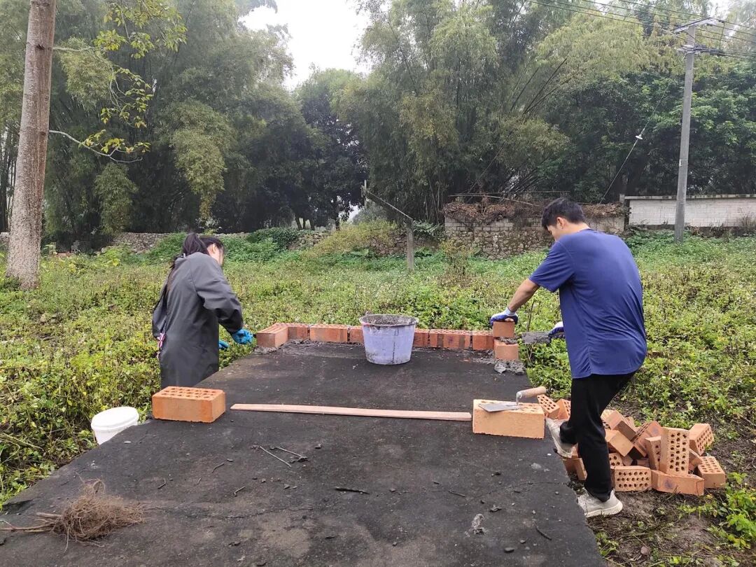 2 面包窑的制作。面包窑已完成建造并投入了使用。面包窑所用的粘土、玻璃瓶和甘蔗叶均来自驮押屯,在村民的帮助下顺利完成建设。