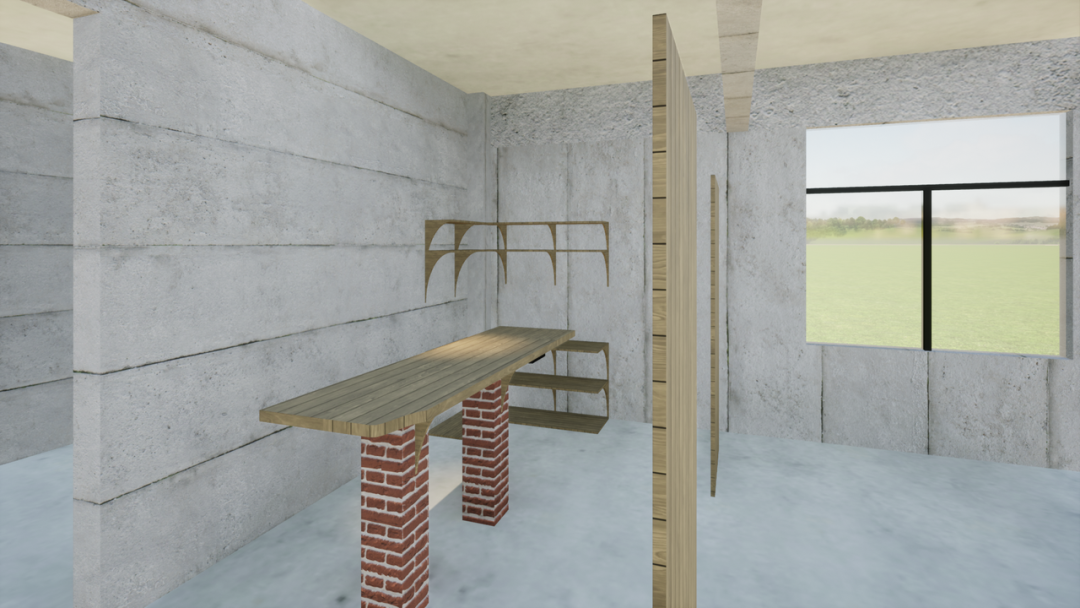 任务目标:完成户外灶台和面包窑的制作,室内多功能展示区域的桌面制作。