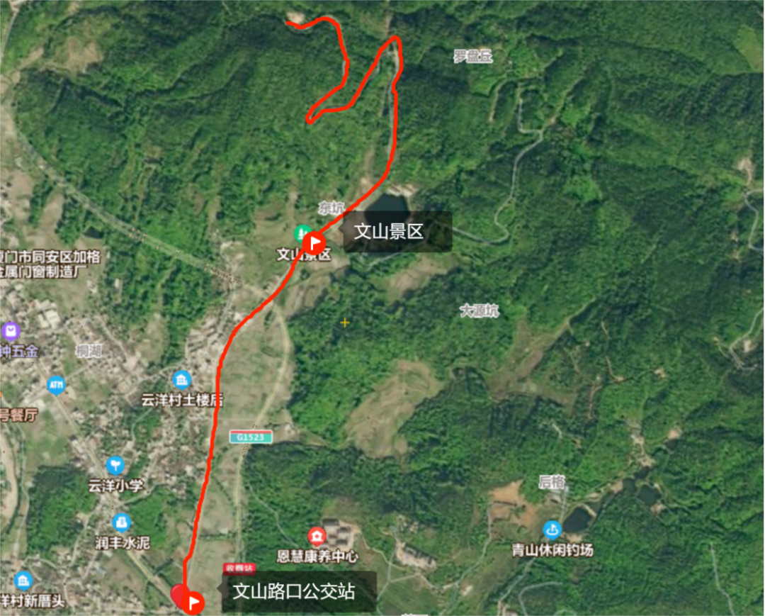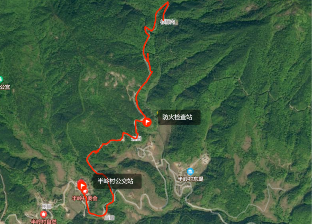 半岭村公交站是很好的路标,这是前往杉际内的起点,沿着示意图里的红色路线即可一路观鸟直到杉际内,到达杉际内文字所在的拐弯处即可折返,徒步观鸟耗时一天,可乘坐623路往返半岭村与同安小西门。除了啄木鸟和猛禽外,杉际内还有红头咬鹃、松鸦、红胸啄花鸟、黄颊山雀、斑尾鹃鸠、灰树鹊等特色留鸟,一路上的风景也很美好,除了路程距离主城区略显遥远。