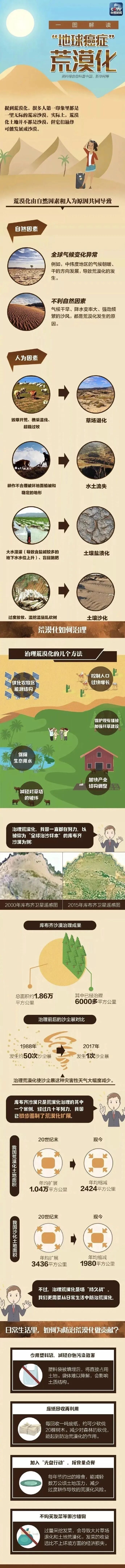 目前我国荒漠化地区生态系统脆弱的问题仍然存在,荒漠化的防治各环节一定要保持尊重自然、顺应自然、保护自然的理念,防沙治沙,你我都能出一份力,亲手为世界添一份绿意。