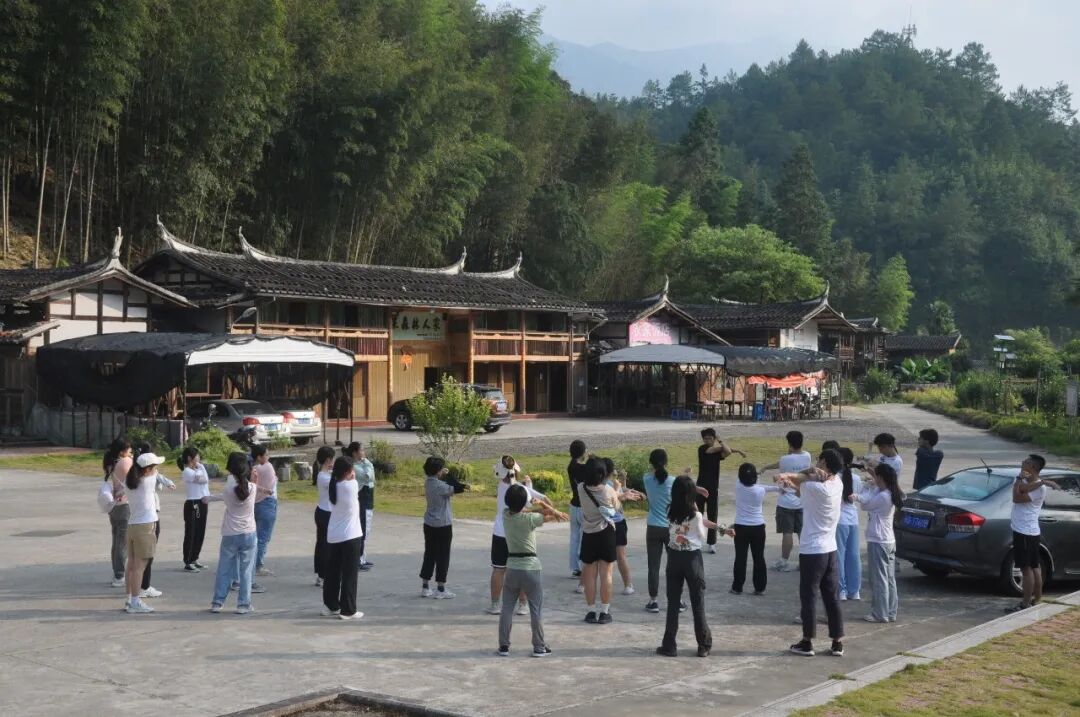 第一次晨训在七点半的阳光和清新的空气中拉开序幕。沿着潺潺的溪流,伴着纷飞的蜻蜓,小鹿、江茶和青花鱼同学带领大家进行了半小时的晨跑和拉伸运动,大家的身体与头脑被缓缓唤醒。