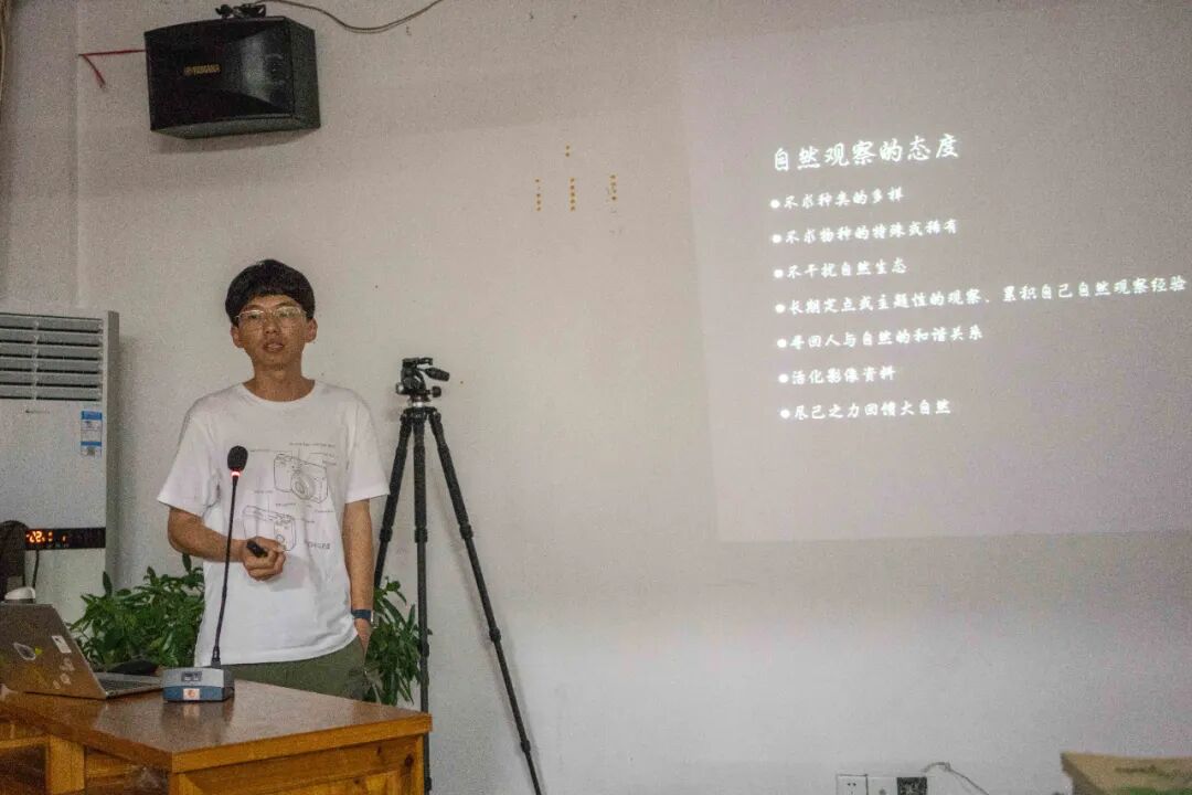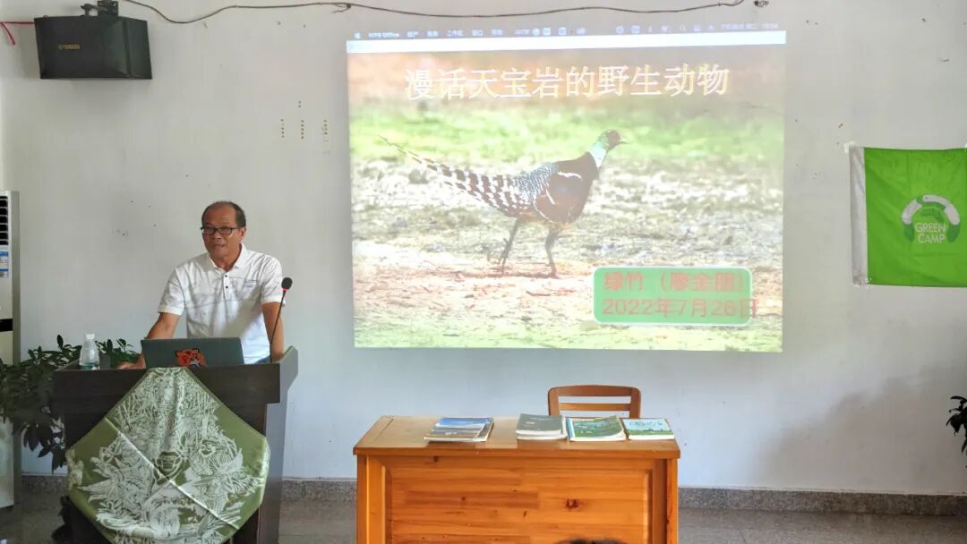 绿竹老师为营员们介绍了天宝岩的野生动物。截至目前,天宝岩国家级自然保护区观测到68种兽类287种鸟类和325种蝶类。在课堂上,老师展示了他拍摄的三百多张鸟类照片,对于这些鸟类的故事绿竹老师如数家珍,处处体现着长期的自然观察所积累的丰富经验。