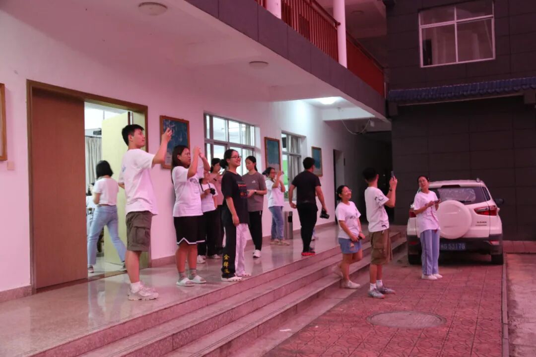 在晨风鸟鸣中,大家从宿舍走向活动场地,开始一天的晨训活动。在游隼、梅朵、熊猫的组织下,我们分为三个组,玩了久违的萝卜蹲游戏。每个小组都把萝卜蹲玩出了新花样,小广场充满了营员们的欢笑声。