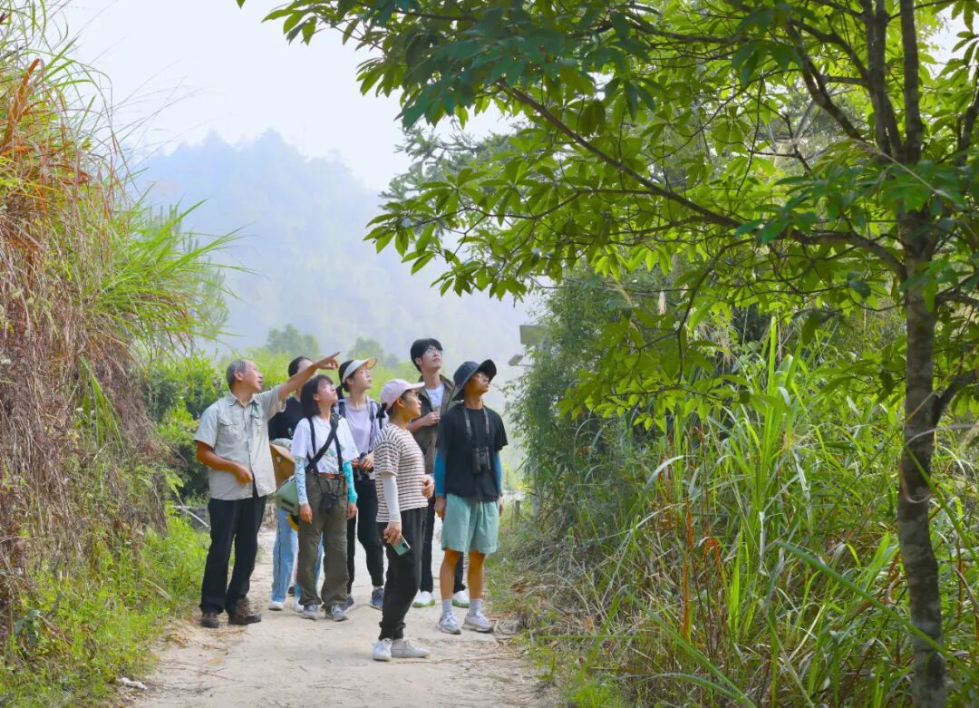 在全体营员们的晨训活动前,晨观小队就出发了。大家一路走一路看,听着八爷的讲解,看着保护区的各色植物,充满了渴望的眼神,顺带浅浅预习了上午的课程——植物的智慧。