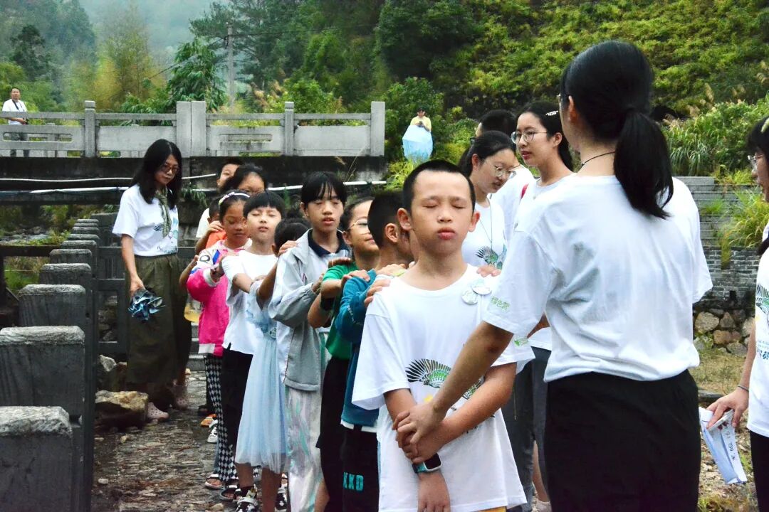 营期第十一天,营员进行第二场自然导赏活动。本次活动对象与第一次不同,面向永安市市区的二十五个亲子家庭。他们在上午参加了由绿色营老师主讲的室内课和并在博物馆进行了任务式探索,下午参加由老师和营员们共创的天宝岩“森林之心”自然探险活动。