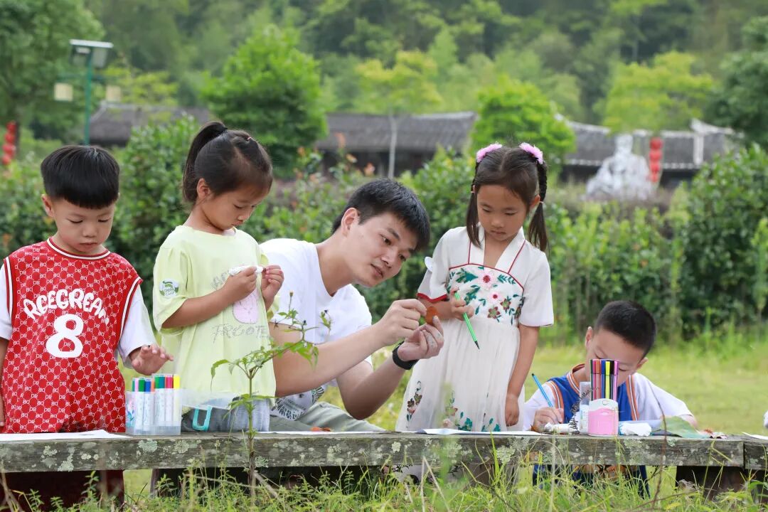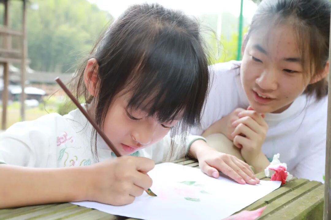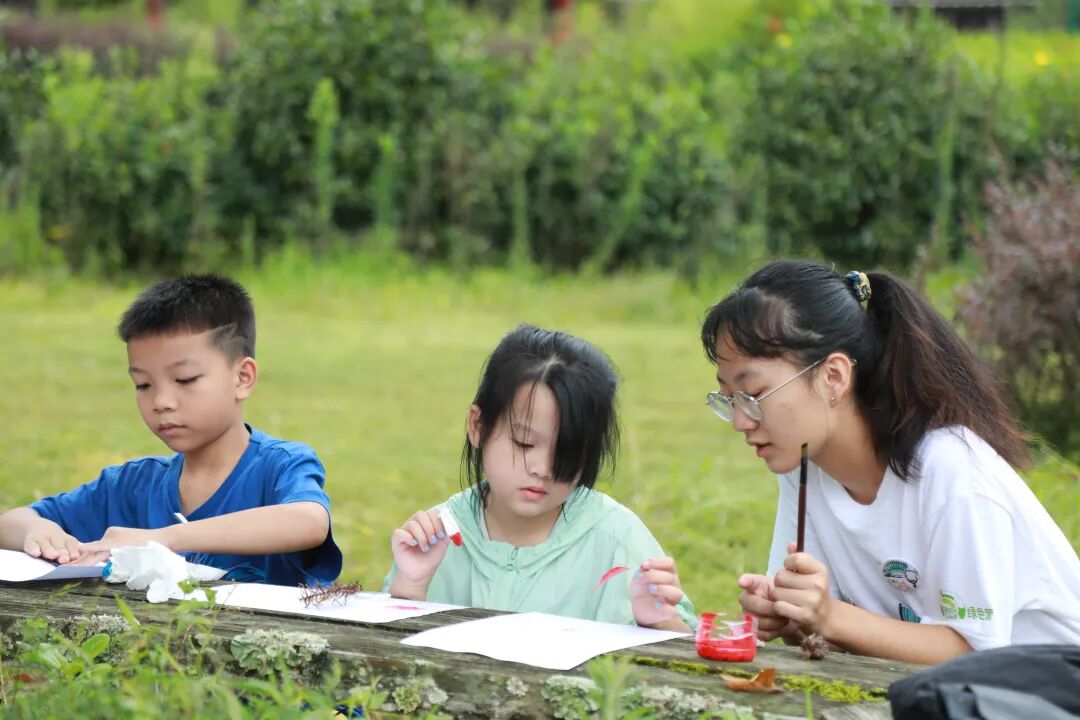 A组营员们带小朋友们进行自然绘画