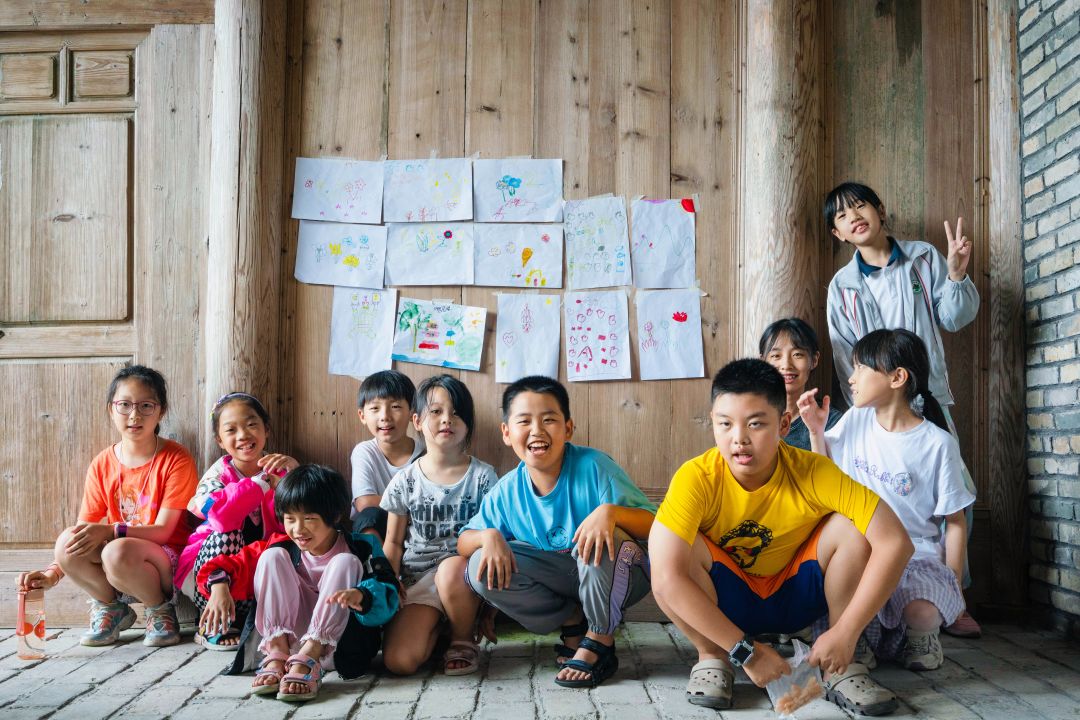 展览结束后,快乐的小画家们和作品合影