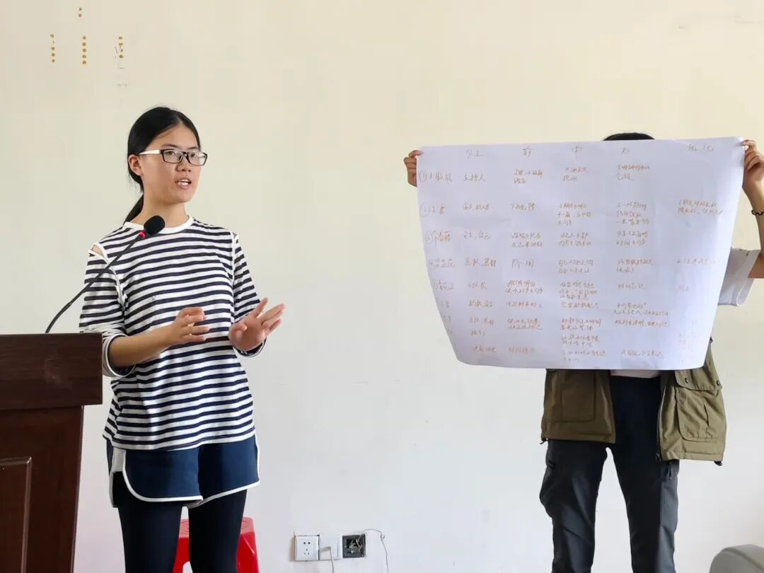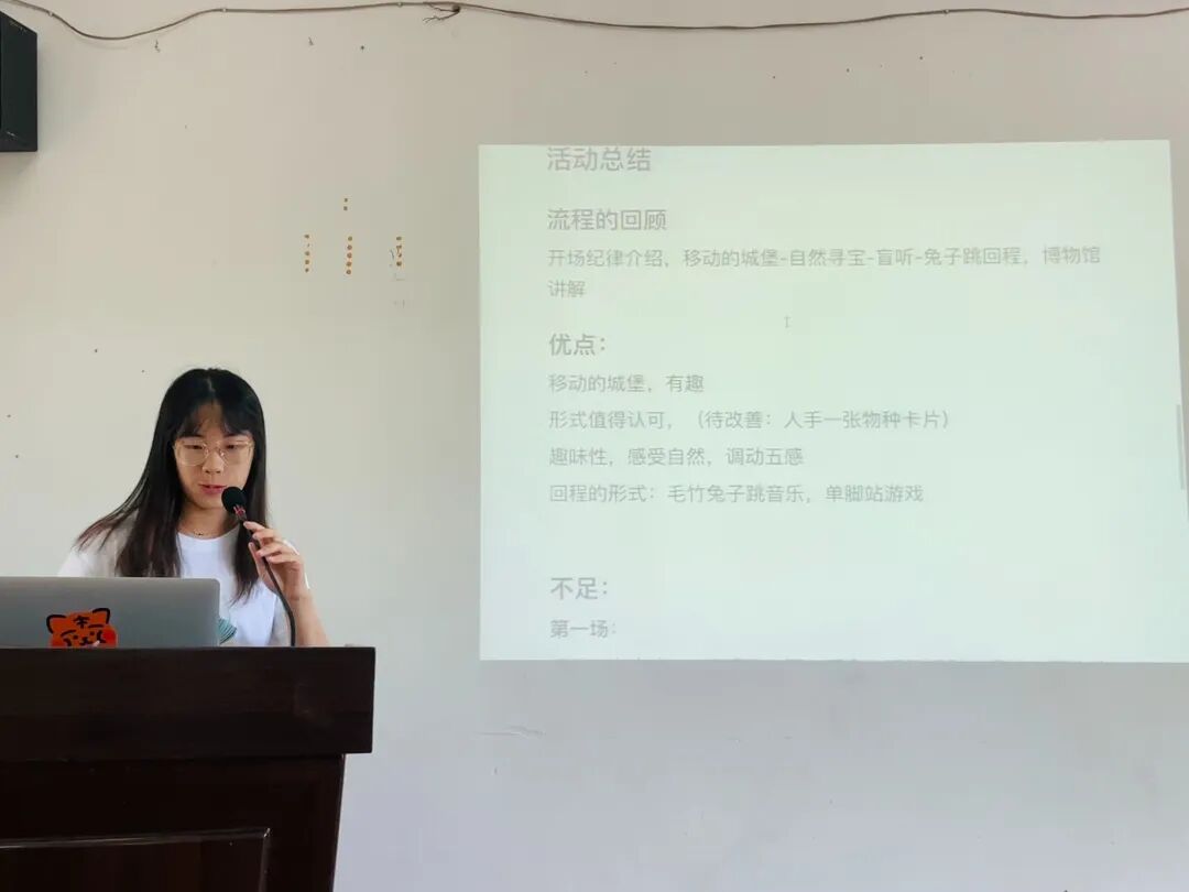 下午营员们按照三个公开导览小组分别组内复盘整个导赏过程,包括整个流程设计、营员们的表现、优点和不足等方面,既看到自己的长处,也能正视和面对存在的问题,并积极寻找改进方案。组内复盘结束后分小组汇报复盘内容,通过分享大家共享了三个导赏方案的经验和教训。