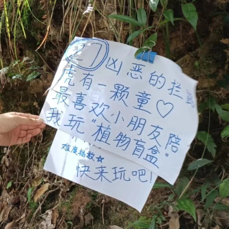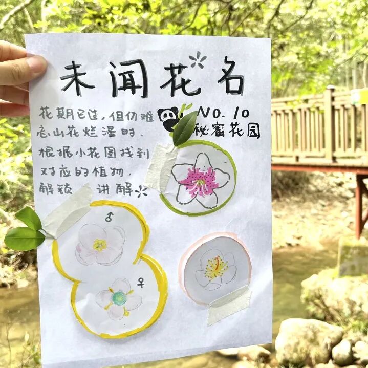 小朋友们根据营员们发布的“物种卡片”宝藏,在沿途寻找对应的动植物,解锁对应的知识讲解。一旦发现“宝藏”,小朋友们便兴奋地拉着营员们去核对,抛出一连串好奇的疑问,迫不及待想要知道答案。