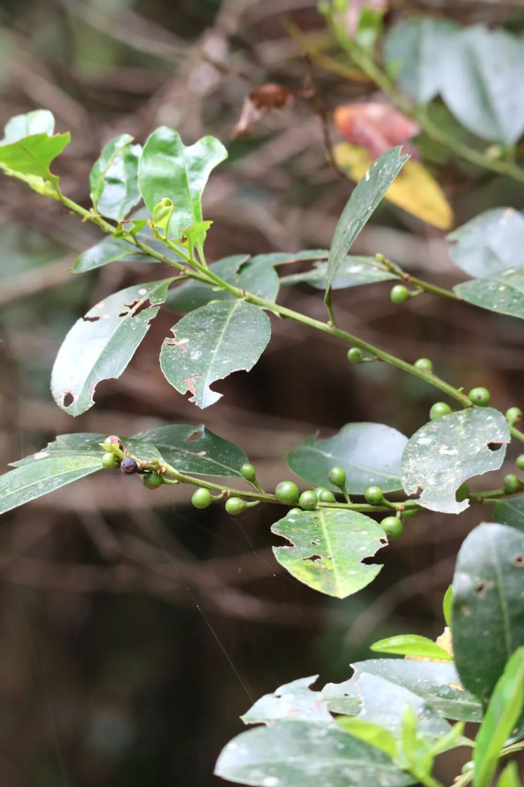 三花冬青正值果期,结出了一个个绿色的小果子 © 熊猫