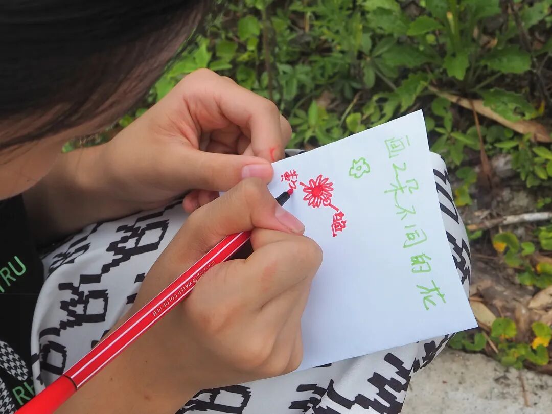 “我们以游戏的方式,引导孩子们去体验、观察、思考。把鬼针草粘在衣服上玩,孩子们懂得了魔术贴的原理。学着编狗尾草,听马缨丹变色的神奇,他们扑闪的眼睛中充满好奇。短短一小时的自然体验,我想很难赋予过多的教育意义。但是孩子们在自然中玩耍,那些如夏花般灿烂的笑容,我想好好珍藏。”