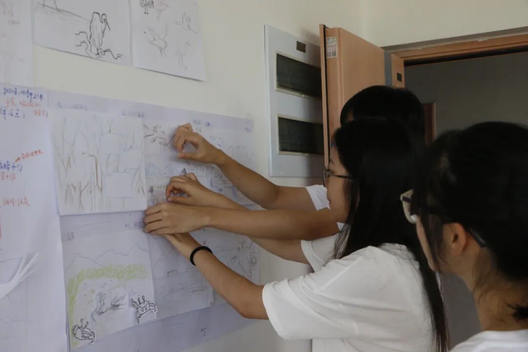 上午,各课程设计小组在为晚上的成果展示紧锣密鼓地做最后的论证、调整、完善。本次红树林课程设计分为桌面游戏、自然影片、自然绘本、自然戏剧四个小组,分别聚焦游戏思维、科普宣传、故事演绎、情景设想维度,以不同的视角展现人类与红树林生态系统的关系。