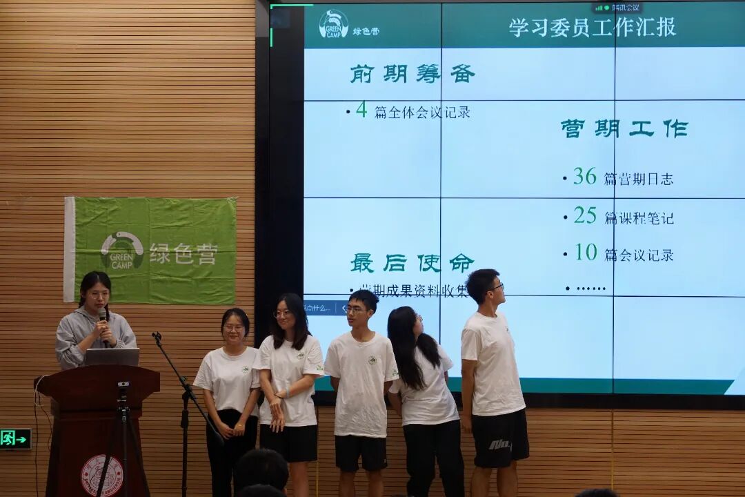 接下来是委员的工作汇报环节。十天前委员们设定目标写下期待的情景仿佛还历历在目,十天后已然到了验收成果总结体悟的时候。各个委员在自己的岗位上做到尽善尽美,且仍有许多工作将延续到营期之后,这就是我们所谓的“站好最后一班岗”!