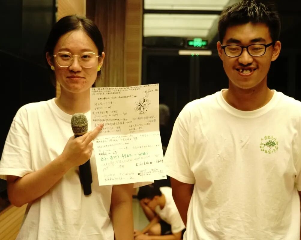 来自厦门大学绿野协会的筹委老师和营员们唱起红树林项目组组歌《因爱而美丽》,筹委们齐唱缅栀子改编的营歌《背包客》,社区宣讲的半边天小组带来《觉醒年代》女性配音节目,山梗在荧光爱心背景下表演一段潇洒街舞……情到高潮,大家点歌欢唱,拉手起舞,紧紧相拥。